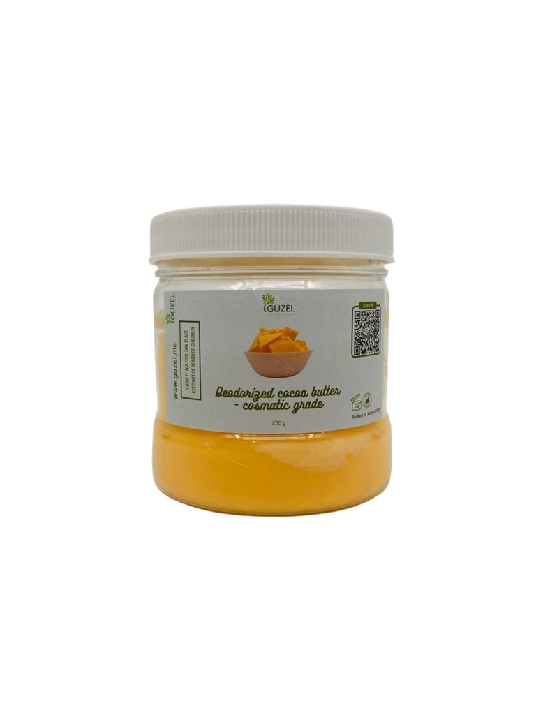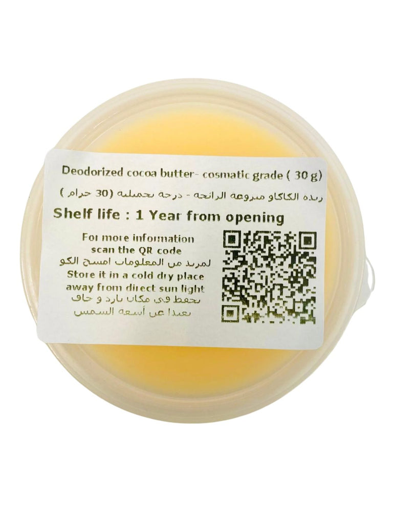 زبدة الكاكاو منزوعة الرائحة (درجة تجميلية) هي دهن عالي الجودة مُستخلص من حبوب الكاكاو، وقد خضعت لعملية إزالة الروائح لإزالة رائحة الشوكولاتة الطبيعية، مما يُنتج رائحة محايدة. تحتفظ بجميع خصائص زبدة الكاكاو الخام المُرطبة والمُلطفة، ولكن بدون رائحة الكاكاو القوية، مما يجعلها مثالية للاستخدام في منتجات العناية الشخصية المُعطّرة.